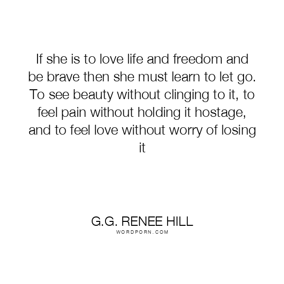 If she is to love life and freedom and be brave then she must learn to let go. To see beauty without clinging to it, to feel pain without holding it hostage, and to feel love without worry of losing it