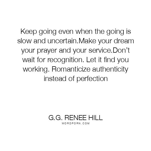 Keep going even when the going is slow and uncertain.Make your dream your prayer and your service.Don’t wait for recognition. Let it find you working. Romanticize authenticity instead of perfection