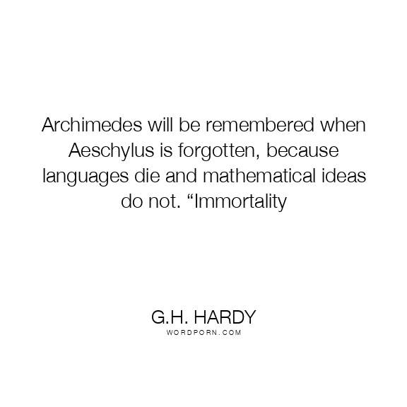 Archimedes will be remembered when Aeschylus is forgotten, because languages die and mathematical ideas do not. “Immortality
