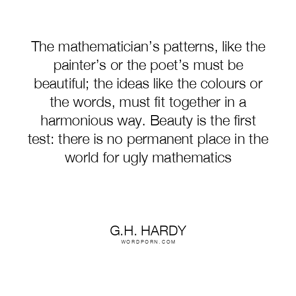 The mathematician’s patterns, like the painter’s or the poet’s must be beautiful; the ideas like the colours or the words, must fit together in a harmonious way. Beauty is the first test: there is no permanent place in the world for ugly mathematics