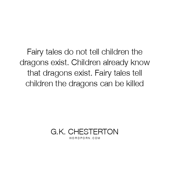 Fairy tales do not tell children the dragons exist. Children already know that dragons exist. Fairy tales tell children the dragons can be killed