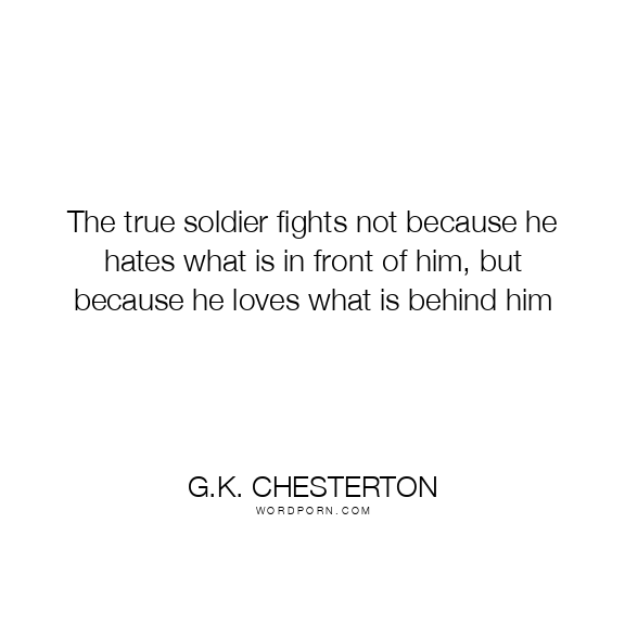 The true soldier fights not because he hates what is in front of him, but because he loves what is behind him