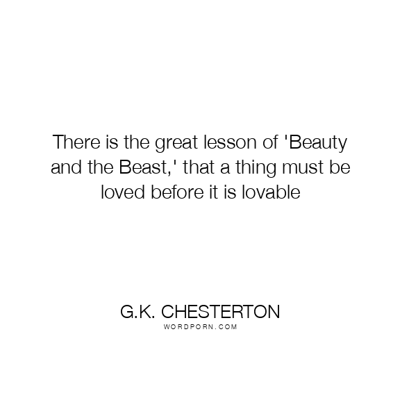 There is the great lesson of 'Beauty and the Beast,' that a thing must be loved before it is lovable