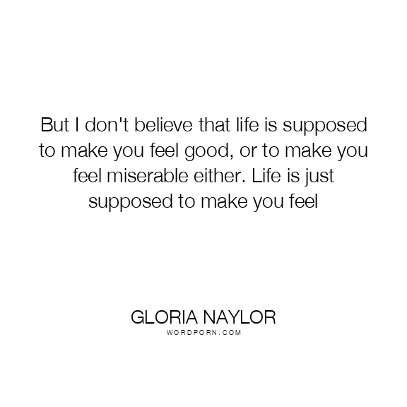 But I don't believe that life is supposed to make you feel good, or to make you feel miserable either. Life is just supposed to make you feel