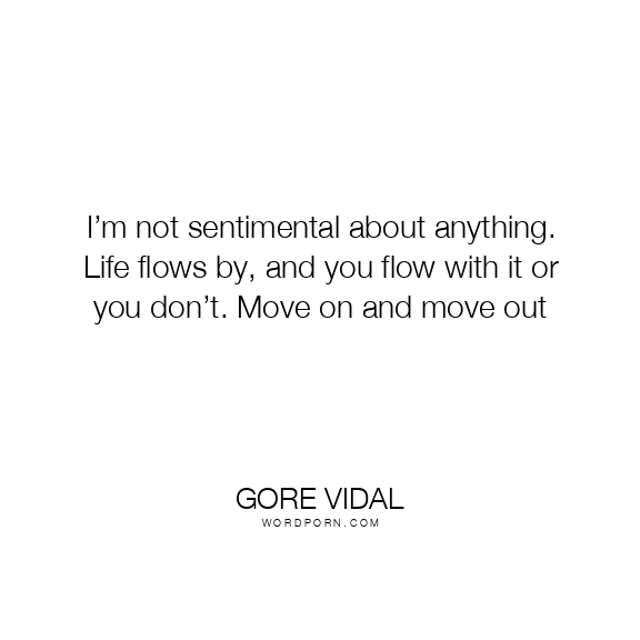 I’m not sentimental about anything. Life flows by, and you flow with it or you don’t. Move on and move out