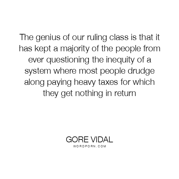 The genius of our ruling class is that it has kept a majority of the people from ever questioning the inequity of a system where most people drudge along paying heavy taxes for which they get nothing in return