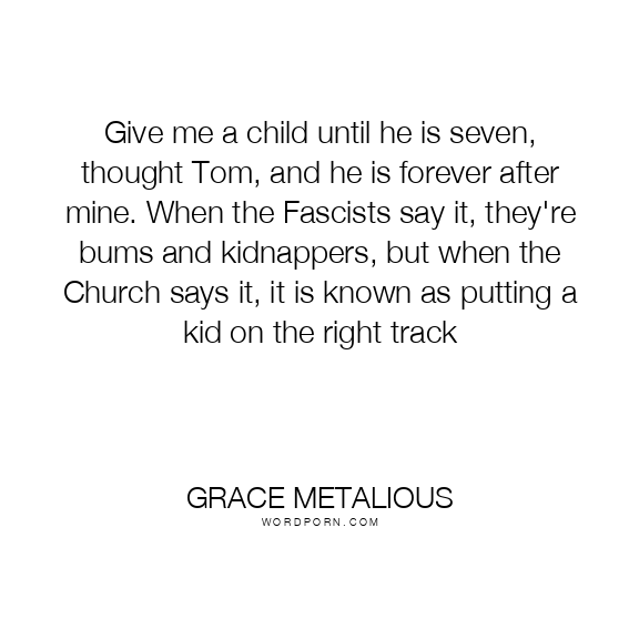 Give me a child until he is seven, thought Tom, and he is forever after mine. When the Fascists say it, they're bums and kidnappers, but when the Church says it, it is known as putting a kid on the right track