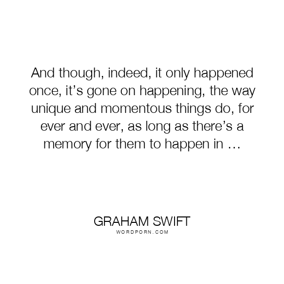 And though, indeed, it only happened once, it’s gone on happening, the way unique and momentous things do, for ever and ever, as long as there’s a memory for them to happen in …