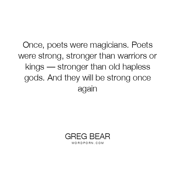 Once, poets were magicians. Poets were strong, stronger than warriors or kings — stronger than old hapless gods. And they will be strong once again