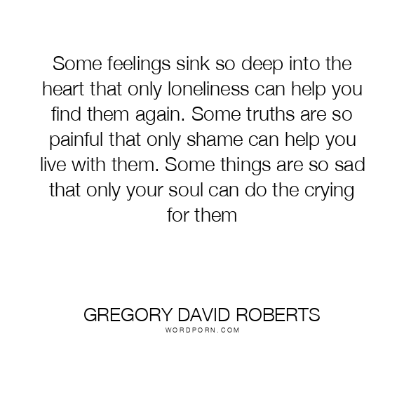 Some feelings sink so deep into the heart that only loneliness can help you find them again. Some truths are so painful that only shame can help you live with them. Some things are so sad that only your soul can do the crying for them