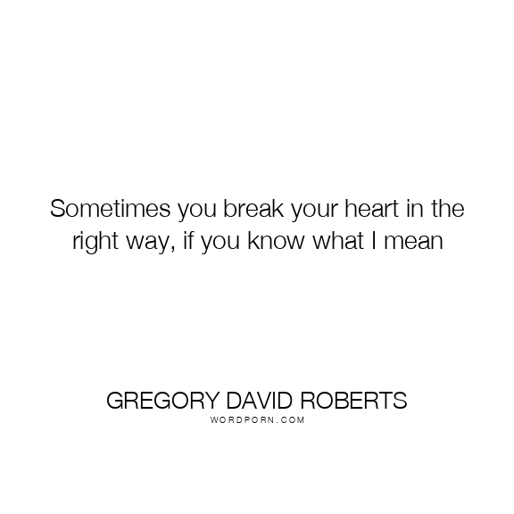 Sometimes you break your heart in the right way, if you know what I mean