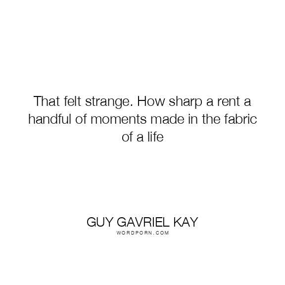That felt strange. How sharp a rent a handful of moments made in the fabric of a life