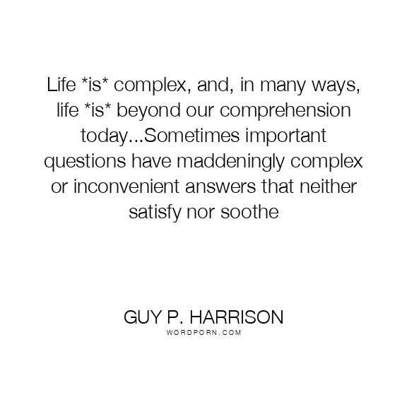 Life *is* complex, and, in many ways, life *is* beyond our comprehension today...Sometimes important questions have maddeningly complex or inconvenient answers that neither satisfy nor soothe