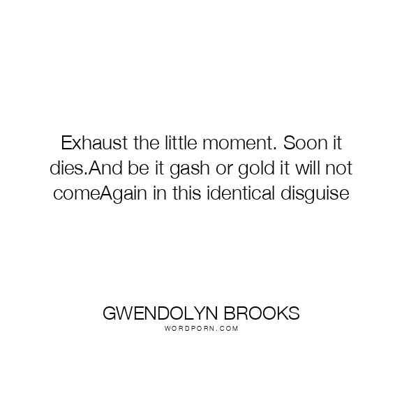 Exhaust the little moment. Soon it dies.And be it gash or gold it will not comeAgain in this identical disguise