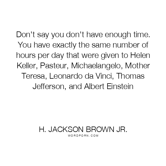 Don't say you don't have enough time. You have exactly the same number of hours per day that were given to Helen Keller, Pasteur, Michaelangelo, Mother Teresa, Leonardo da Vinci, Thomas Jefferson, and Albert Einstein