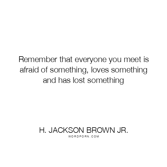 Remember that everyone you meet is afraid of something, loves something and has lost something