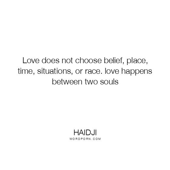 Love does not choose belief, place, time, situations, or race. love happens between two souls