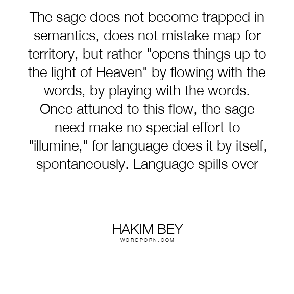 The sage does not become trapped in semantics, does not mistake map for territory, but rather "opens things up to the light of Heaven" by flowing with the words, by playing with the words. Once attuned to this flow, the sage need make no special effort to "illumine," for language does it by itself, spontaneously. Language spills over