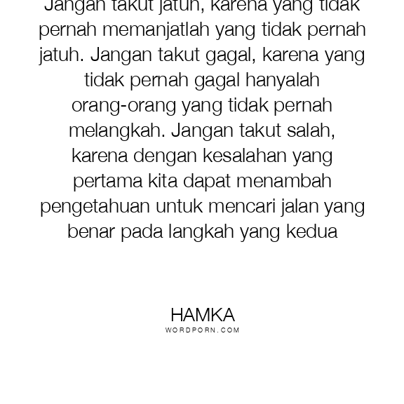 Jangan takut jatuh, karena yang tidak pernah memanjatlah yang tidak pernah jatuh. Jangan takut gagal, karena yang tidak pernah gagal hanyalah orang-orang yang tidak pernah melangkah. Jangan takut salah, karena dengan kesalahan yang pertama kita dapat menambah pengetahuan untuk mencari jalan yang benar pada langkah yang kedua