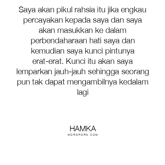Saya akan pikul rahsia itu jika engkau percayakan kepada saya dan saya akan masukkan ke dalam perbendaharaan hati saya dan kemudian saya kunci pintunya erat-erat. Kunci itu akan saya lemparkan jauh-jauh sehingga seorang pun tak dapat mengambilnya kedalam lagi