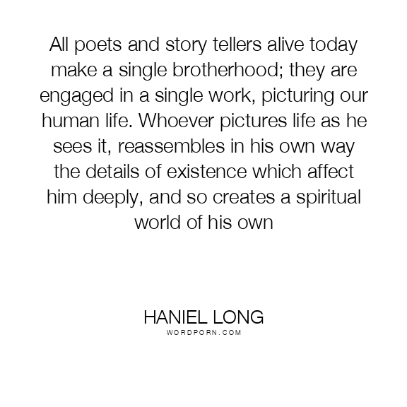 All poets and story tellers alive today make a single brotherhood; they are engaged in a single work, picturing our human life. Whoever pictures life as he sees it, reassembles in his own way the details of existence which affect him deeply, and so creates a spiritual world of his own