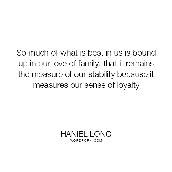 So much of what is best in us is bound up in our love of family, that it remains the measure of our stability because it measures our sense of loyalty