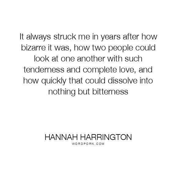 It always struck me in years after how bizarre it was, how two people could look at one another with such tenderness and complete love, and how quickly that could dissolve into nothing but bitterness