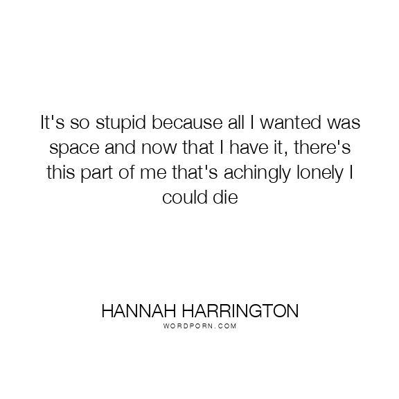 It's so stupid because all I wanted was space and now that I have it, there's this part of me that's achingly lonely I could die