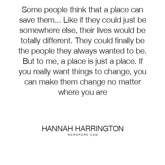 Some people think that a place can save them... Like if they could just be somewhere else, their lives would be totally different. They could finally be the people they always wanted to be. But to me, a place is just a place. If you really want things to change, you can make them change no matter where you are