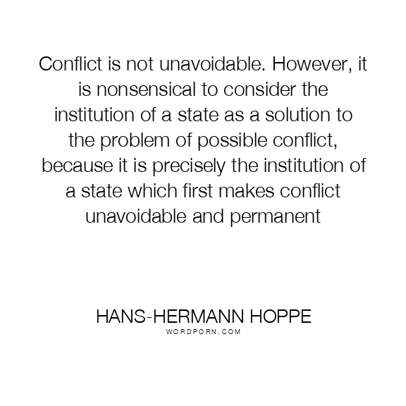 Conflict is not unavoidable. However, it is nonsensical to consider the institution of a state as a solution to the problem of possible conflict, because it is precisely the institution of a state which first makes conflict unavoidable and permanent