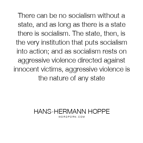 There can be no socialism without a state, and as long as there is a state there is socialism. The state, then, is the very institution that puts socialism into action; and as socialism rests on aggressive violence directed against innocent victims, aggressive violence is the nature of any state