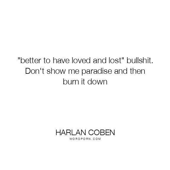"better to have loved and lost" bullshit. Don't show me paradise and then burn it down