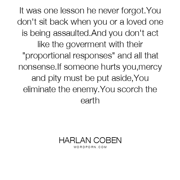 It was one lesson he never forgot.You don't sit back when you or a loved one is being assaulted.And you don't act like the goverment with their "proportional responses" and all that nonsense.If someone hurts you,mercy and pity must be put aside,You eliminate the enemy.You scorch the earth