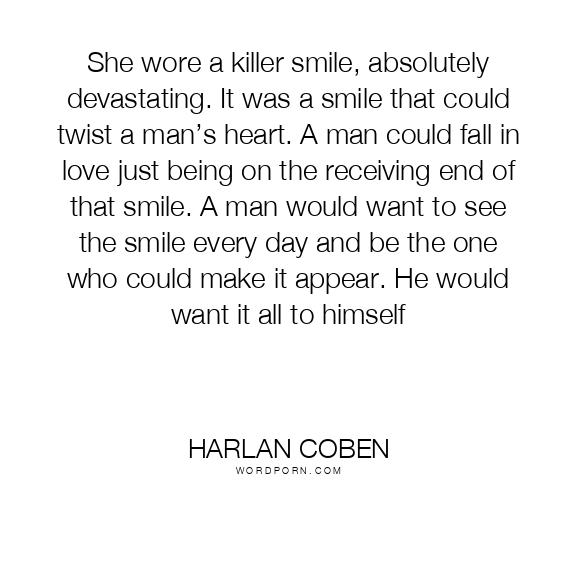 She wore a killer smile, absolutely devastating. It was a smile that could twist a man’s heart. A man could fall in love just being on the receiving end of that smile. A man would want to see the smile every day and be the one who could make it appear. He would want it all to himself