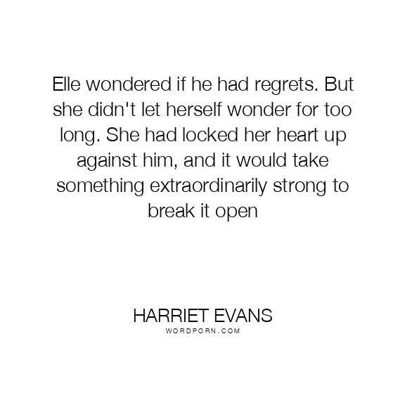 Elle wondered if he had regrets. But she didn't let herself wonder for too long. She had locked her heart up against him, and it would take something extraordinarily strong to break it open