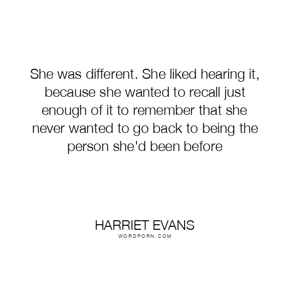 She was different. She liked hearing it, because she wanted to recall just enough of it to remember that she never wanted to go back to being the person she'd been before