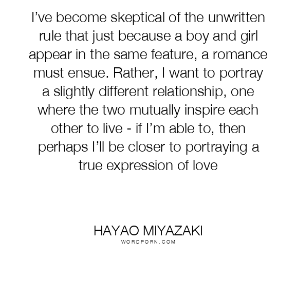 I’ve become skeptical of the unwritten rule that just because a boy and girl appear in the same feature, a romance must ensue. Rather, I want to portray a slightly different relationship, one where the two mutually inspire each other to live - if I’m able to, then perhaps I’ll be closer to portraying a true expression of love