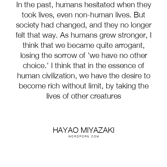 In the past, humans hesitated when they took lives, even non-human lives. But society had changed, and they no longer felt that way. As humans grew stronger, I think that we became quite arrogant, losing the sorrow of 'we have no other choice.' I think that in the essence of human civilization, we have the desire to become rich without limit, by taking the lives of other creatures