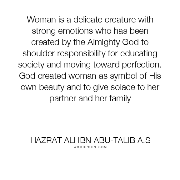 Woman is a delicate creature with strong emotions who has been created by the Almighty God to shoulder responsibility for educating society and moving toward perfection. God created woman as symbol of His own beauty and to give solace to her partner and her family