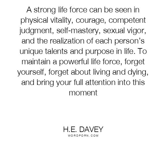 A strong life force can be seen in physical vitality, courage, competent judgment, self-mastery, sexual vigor, and the realization of each person’s unique talents and purpose in life. To maintain a powerful life force, forget yourself, forget about living and dying, and bring your full attention into this moment