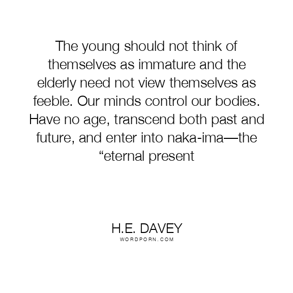 The young should not think of themselves as immature and the elderly need not view themselves as feeble. Our minds control our bodies. Have no age, transcend both past and future, and enter into naka-ima—the “eternal present