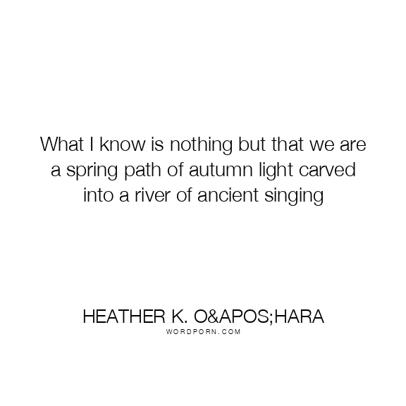 What I know is nothing but that we are a spring path of autumn light carved into a river of ancient singing