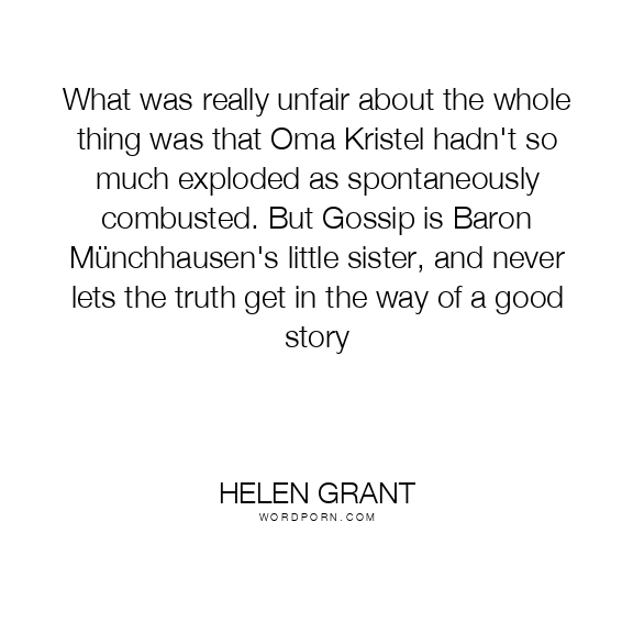 What was really unfair about the whole thing was that Oma Kristel hadn't so much exploded as spontaneously combusted. But Gossip is Baron Münchhausen's little sister, and never lets the truth get in the way of a good story