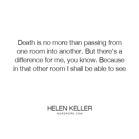 Death is no more than passing from one room into another. But there's a difference for me, you know. Because in that other room I shall be able to see