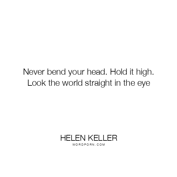Never bend your head. Hold it high. Look the world straight in the eye