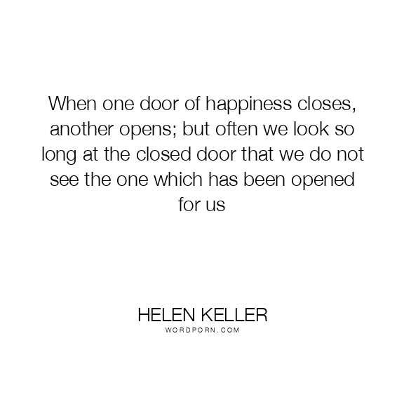 When one door of happiness closes, another opens; but often we look so long at the closed door that we do not see the one which has been opened for us