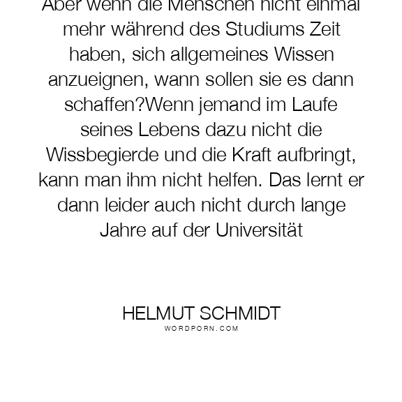 Aber wenn die Menschen nicht einmal mehr während des Studiums Zeit haben, sich allgemeines Wissen anzueignen, wann sollen sie es dann schaffen?Wenn jemand im Laufe seines Lebens dazu nicht die Wissbegierde und die Kraft aufbringt, kann man ihm nicht helfen. Das lernt er dann leider auch nicht durch lange Jahre auf der Universität