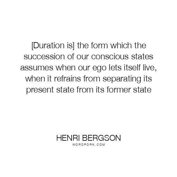 [Duration is] the form which the succession of our conscious states assumes when our ego lets itself live, when it refrains from separating its present state from its former state