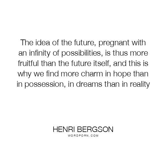 The idea of the future, pregnant with an infinity of possibilities, is thus more fruitful than the future itself, and this is why we find more charm in hope than in possession, in dreams than in reality