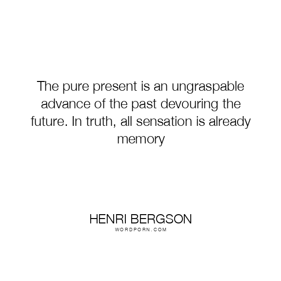 The pure present is an ungraspable advance of the past devouring the future. In truth, all sensation is already memory